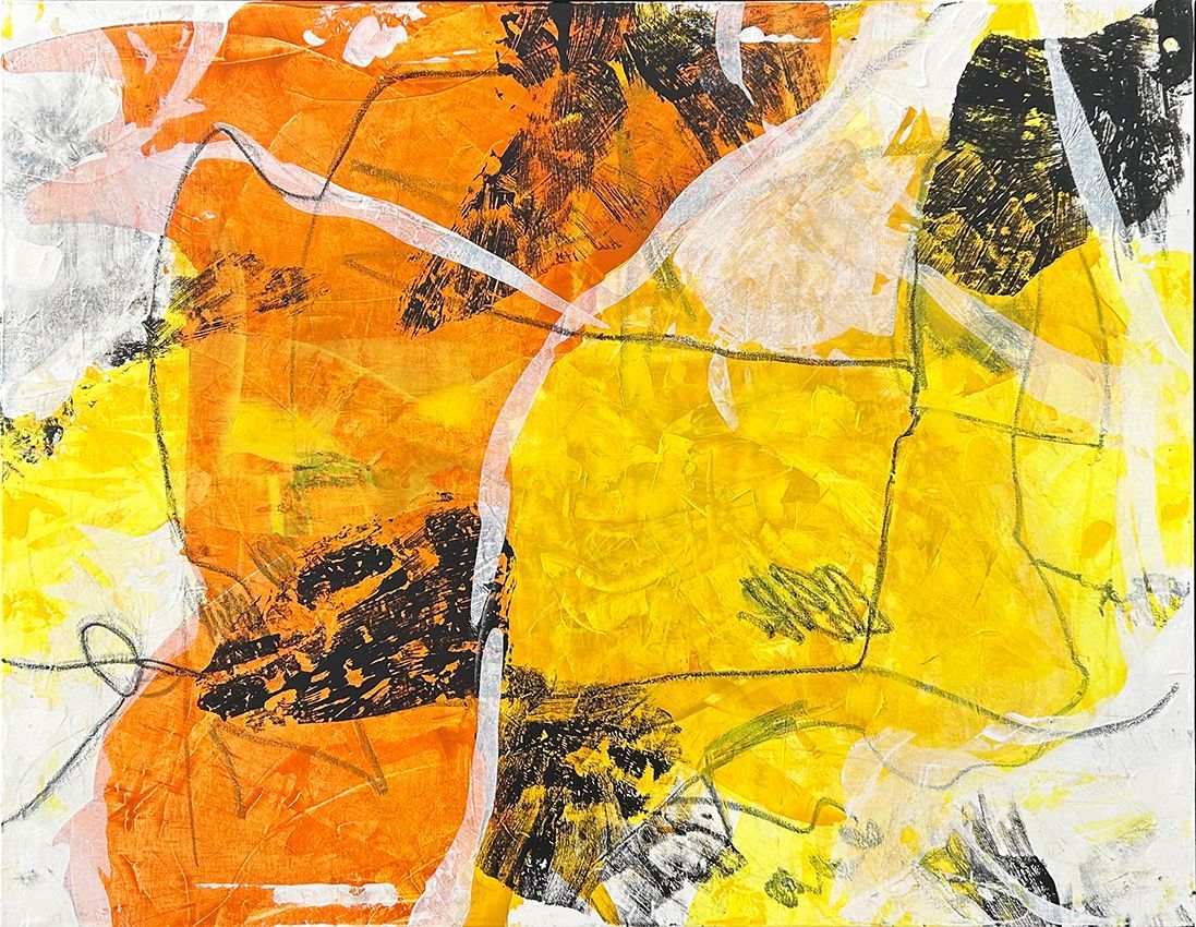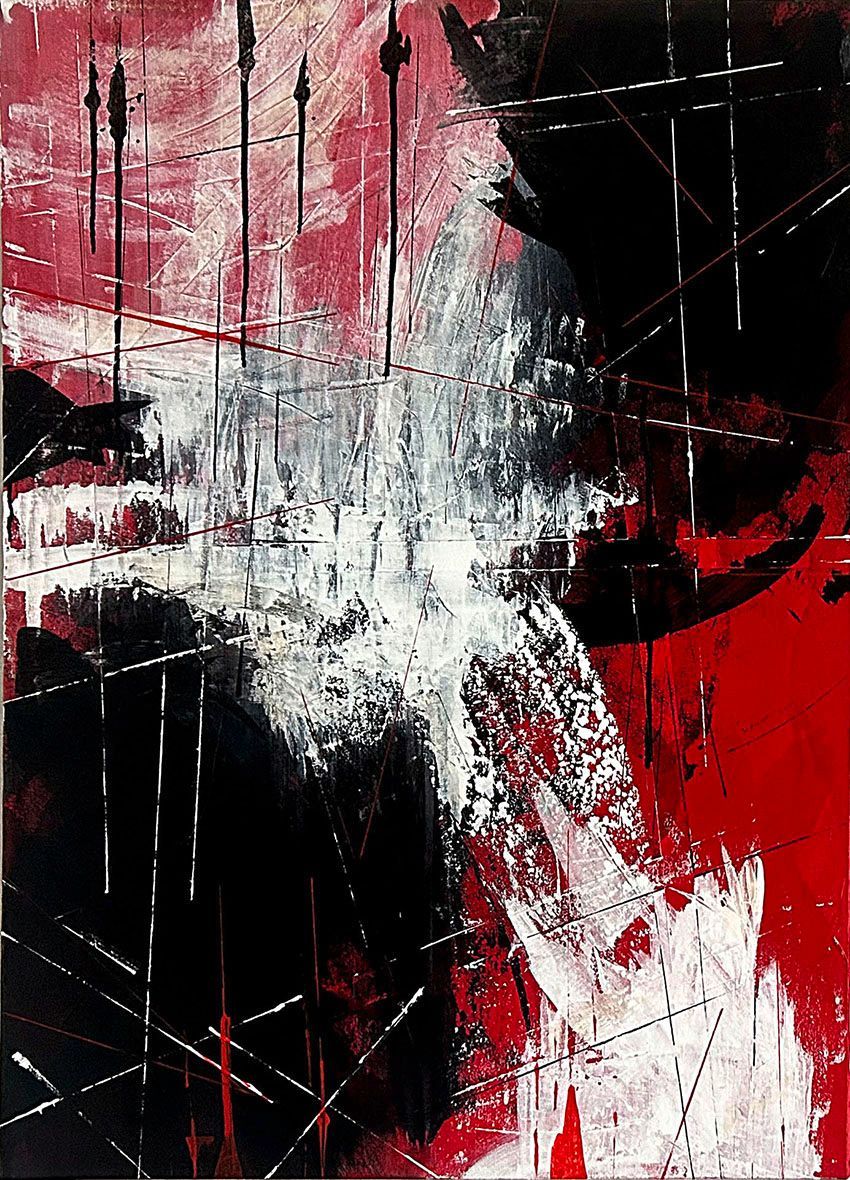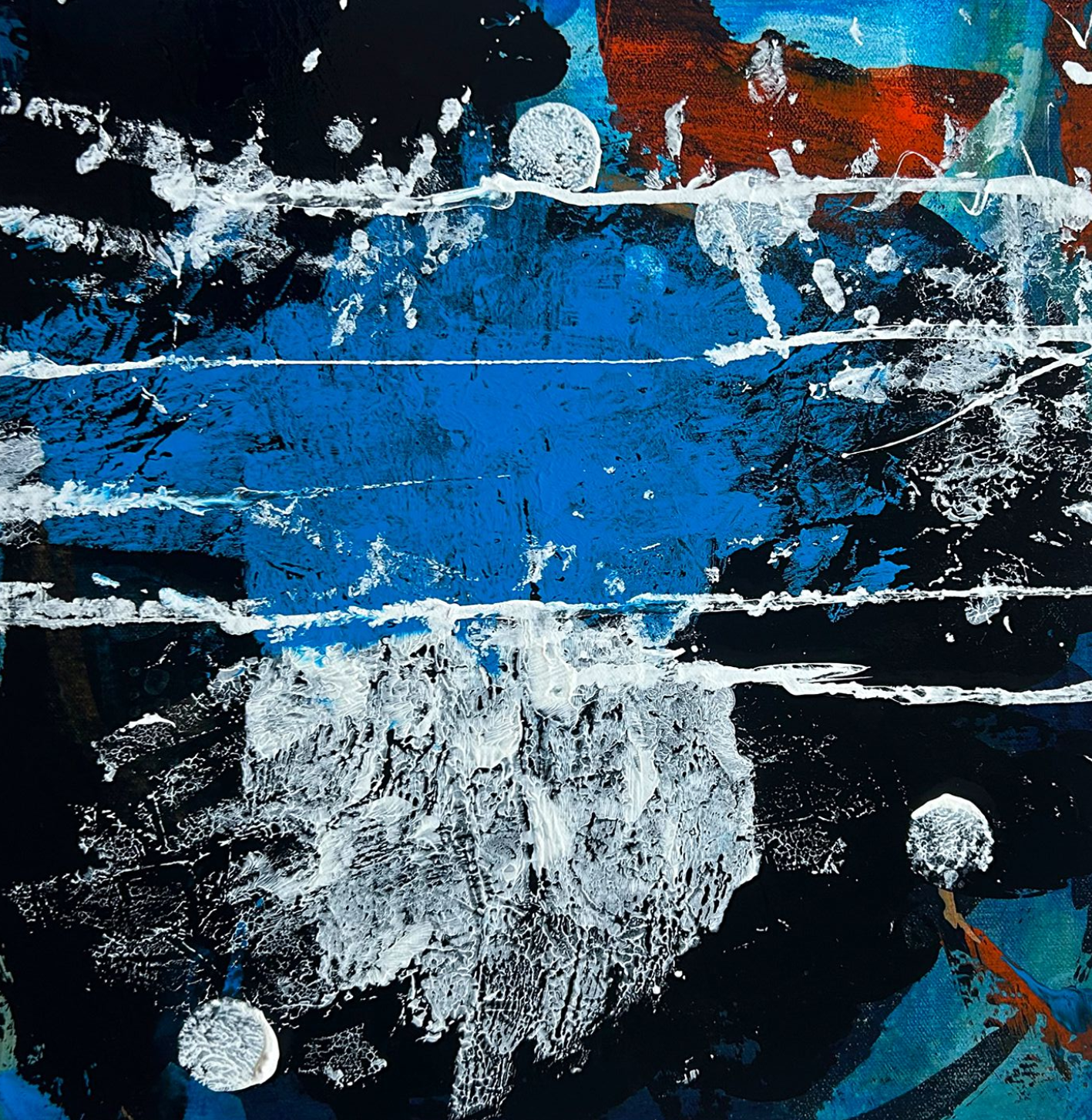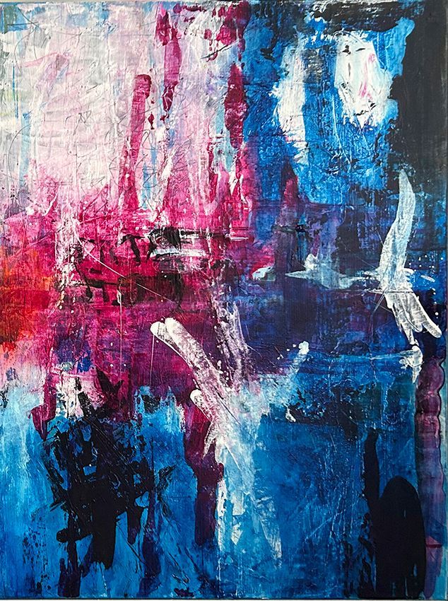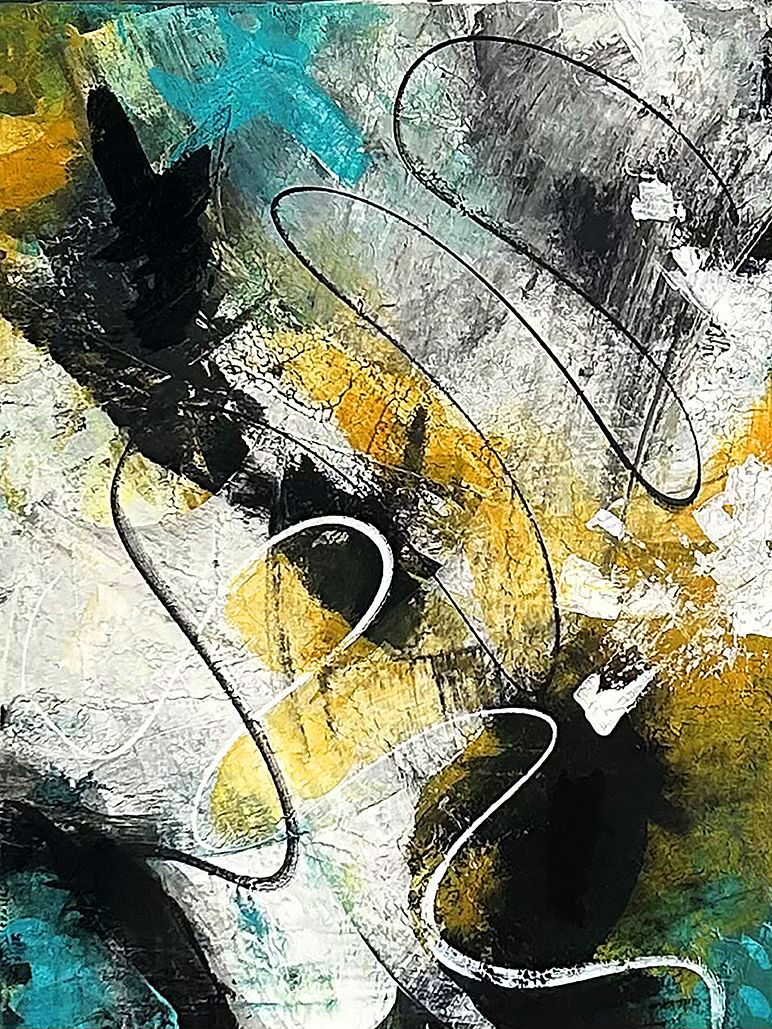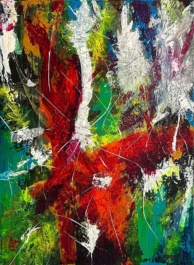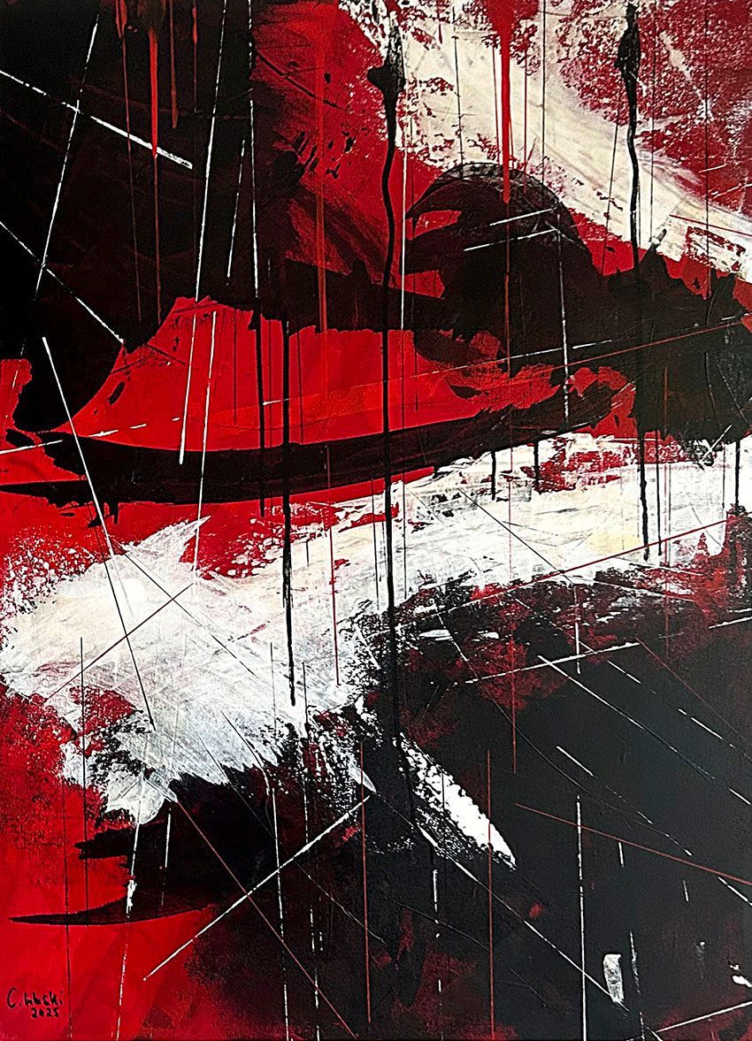 Was Claudias Arbeiten besonders auszeichnet, ist die Vielseitigkeit – sowohl im Motiv als auch in der Herangehensweise. Manchmal entstehen Bilder aus einem klaren Konzept, einer bestimmten Idee, einem Auftrag, der skizziert, was gewünscht wird. Dann wieder lassen sich die Arbeiten von einer inneren Euphorie tragen, entstehen spontane Skizzen, die zu fertigen Stücken heranwachsen. Diese Spannung zwischen kalkulierter Umsetzung und freier Improvisation macht ihre abstrakten Bilder zu einem Spiegel ihrer Lebensweise: strukturiert, doch offen für Überraschungen; präzise geplant, aber neugierig auf neue Impulse.